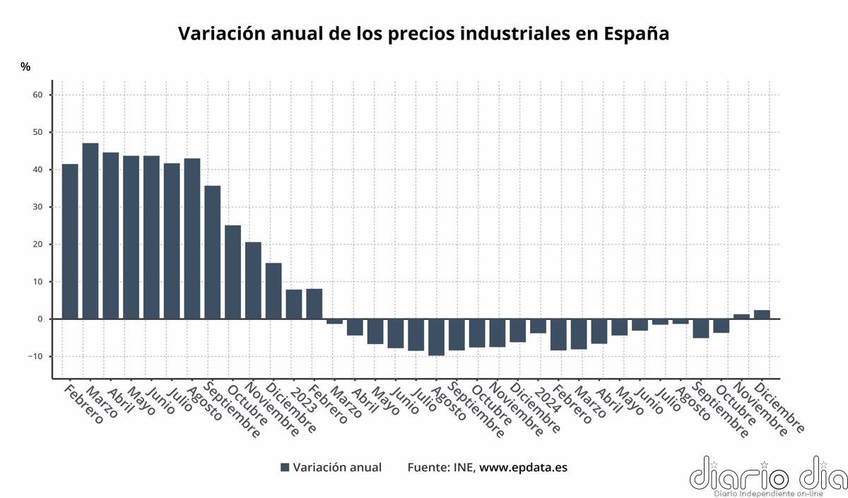 LOS PRECIOS INDUSTRIALES SUBEN UN 0,9% EN EL ÚLTIMO MES DE 2024