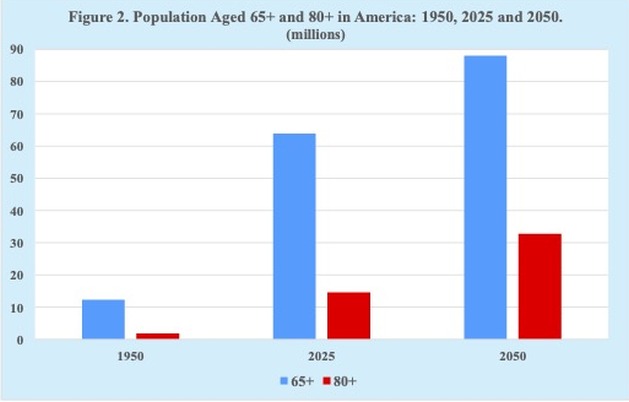 Se prevé que el número de personas mayores en Estados Unidos aumente de los 60 millones actuales a más de 80 millones para 2050. Asimismo, el número de estadounidenses de 85 años o más se duplicará en las próximas décadas. Aún más preocupante, se estima que la cantidad de personas de 100 años o más se triplicará para mediados de siglo.