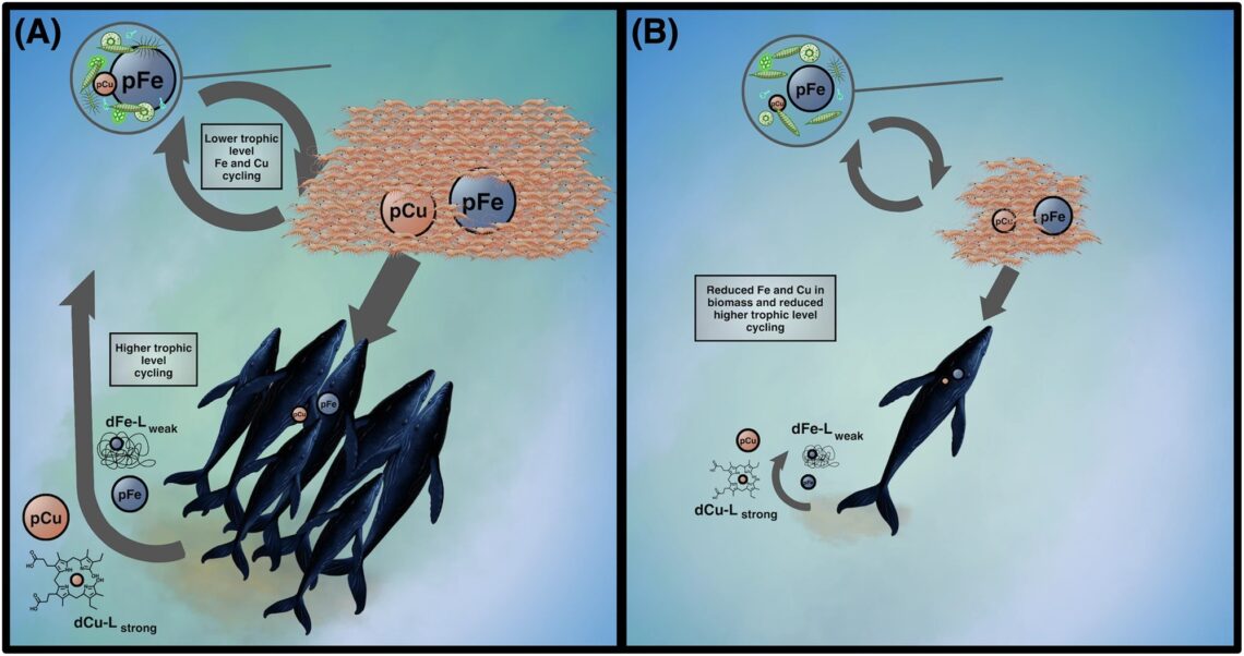 Una investigación dirigida por oceanógrafos de la Universidad de Washington (UW) respalda esa teoría. El estudio, publicado en Communications Earth & Environment, ha descubierto que los excrementos de ballena contienen cantidades significativas de hierro, un elemento vital que suele escasear en los ecosistemas oceánicos, y formas no tóxicas de cobre, otro nutriente esencial que, en algunas formas, puede perjudicar la vida.