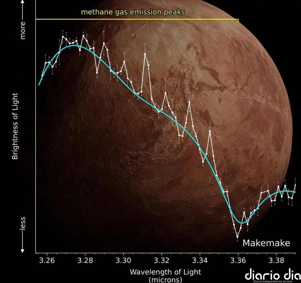 Este descubrimiento convierte a Makemake en el segundo objeto transneptuniano, después de Plutón, donde se ha confirmado la presencia de gas. El gas se identificó como metano.