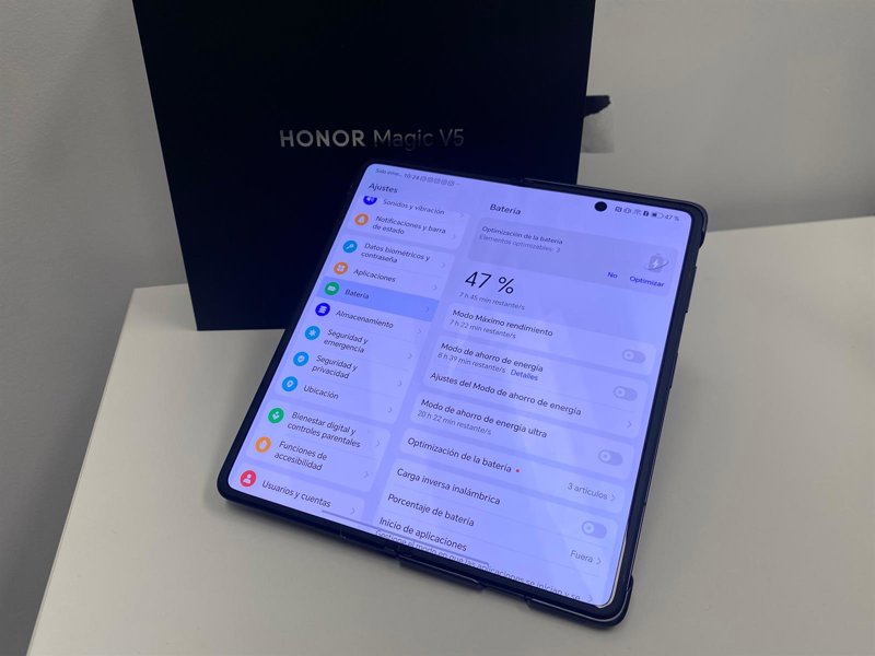 Resaltan igualmente las facilidades de uso en la interfaz que ofrece el Magic V5 a la hora de navegar por aplicaciones o por los menús del ‘smartphone’, con opciones adaptadas a esta pantalla de gran tamaño tanto a la hora de escribir como de acceder a los distintos botones o pestañas. Esto es gracias a su sistema operativo Magic UI 9.1, basado en Android 15.