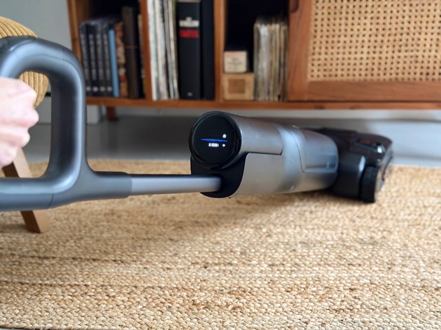 El diseño también responde a problemas habituales en este tipo de aparatos. El sistema ‘JawScrapers’ demuestra ser eficaz para evitar que el pelo se enrede en el rodillo, algo que suele ser una de las principales molestias en hogares con mascotas. La capacidad de inclinarse -ya mencionada- y los perfiles estrechos a los lados del rodillo hacen que este dispositivo sea capaz de llegar casi hasta cualquier rincón de la casa.