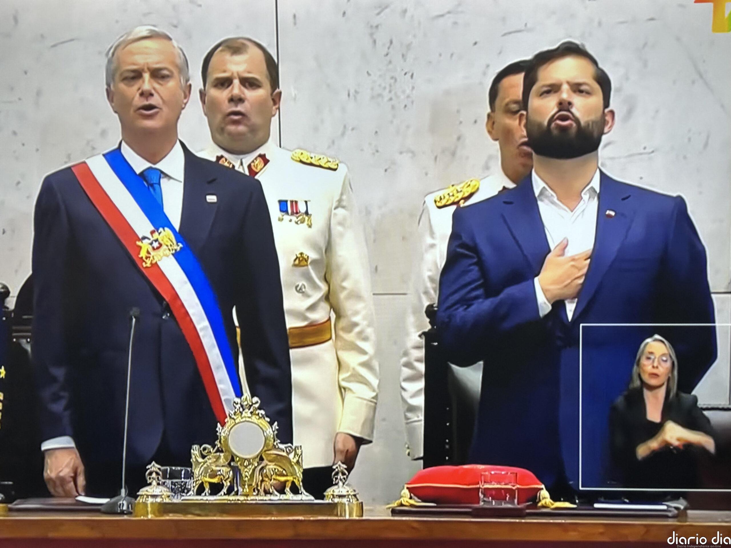 “Sí, juro”, respondió Kast al requerimiento de estilo que le hizo la presidenta del Senado, Paulina Núñez, quien le impuso de seguidas la banda presidencial que antes portó Boric, frente al Congreso en pleno y con la presencia de varios jefes de Estado de países amigos, entre ellos el rey Felipe VI de España.