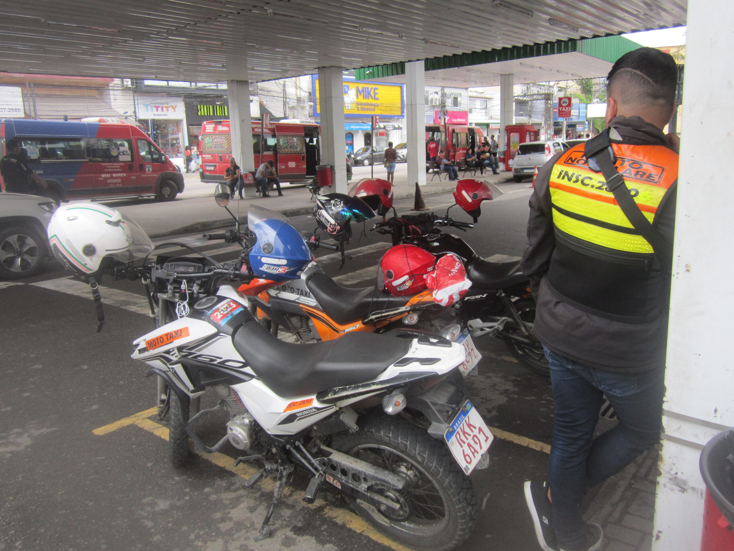 Parada de mototaxis en Maricá, una ciudad de 210 000 habitantes a 64 kilómetros de Río de Janeiro. Aquí, la adopción del autobús gratuito para todos los usuarios redujo los mototaxis, que son numerosos en las ciudades pequeñas y medianas de Brasil. Imagen: Mario Osava / IPS