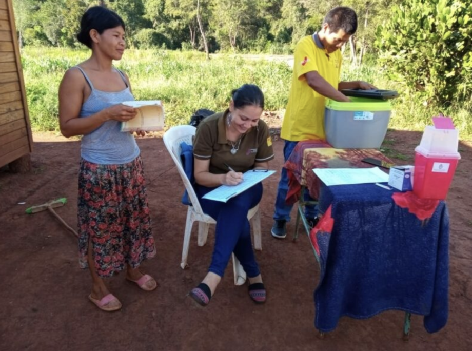 Funcionarios sanitarios llevan a cabo campañas de salud en comunidades indígenas en Misiones, en el noreste de Argentina. En esta nación sudamericano la provisión de servicios lingüísticos para los pueblos originarios ha decaído, como otros de los derechos indígenas, desde la llegada al poder de Javier Milei, en diciembre de 2023. Imagen: Ministerio de Salud de Misiones