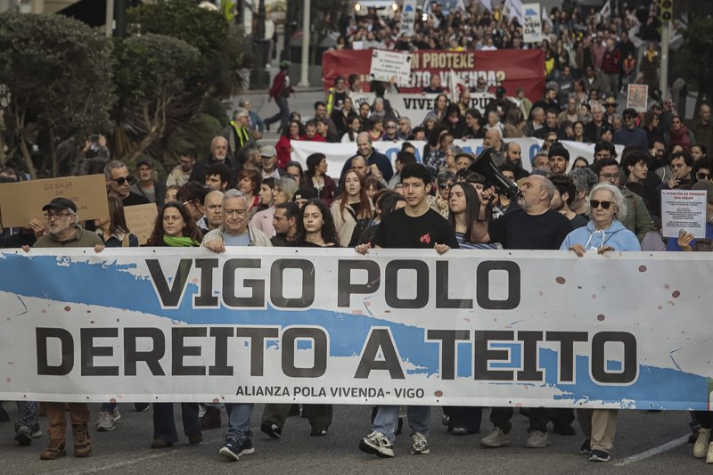 Varios centenares de personas han participado esta tarde en Vigo en una manifestación que reivindicaba el «derecho a techo» y la aplicación de medidas «inmediatas» que permitan atajar la situación de «emergencia habitacional», como la declaración de la ciudad como zona tensionada y la ampliación del parque público de vivienda a partir de la existente.
