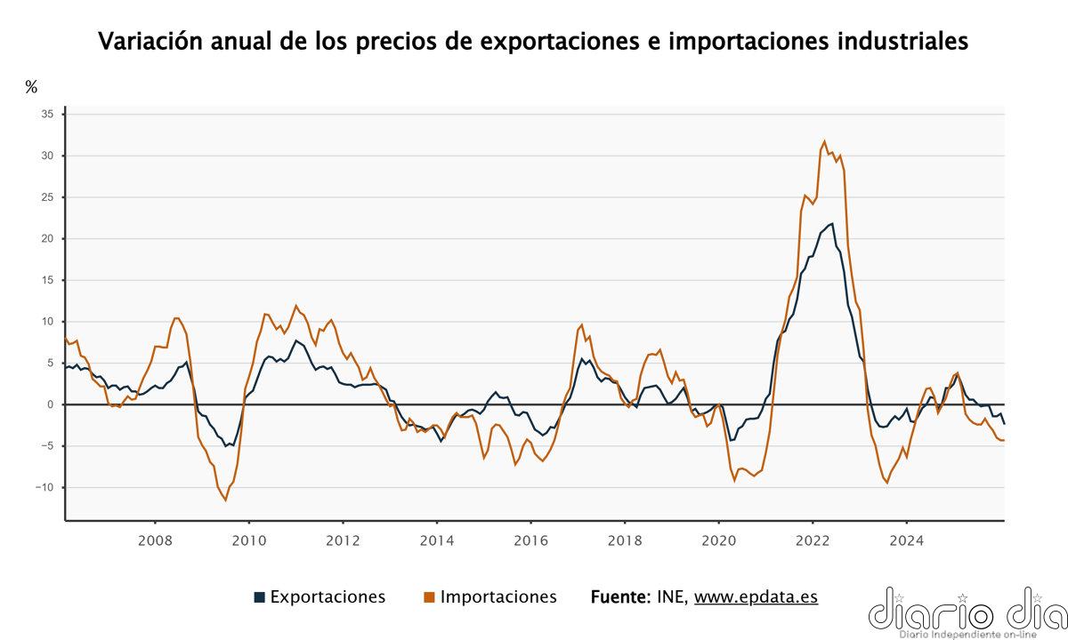 LOS PRECIOS DE IMPORTACIONES INDUSTRIALES SE HUNDEN UN 4,3%