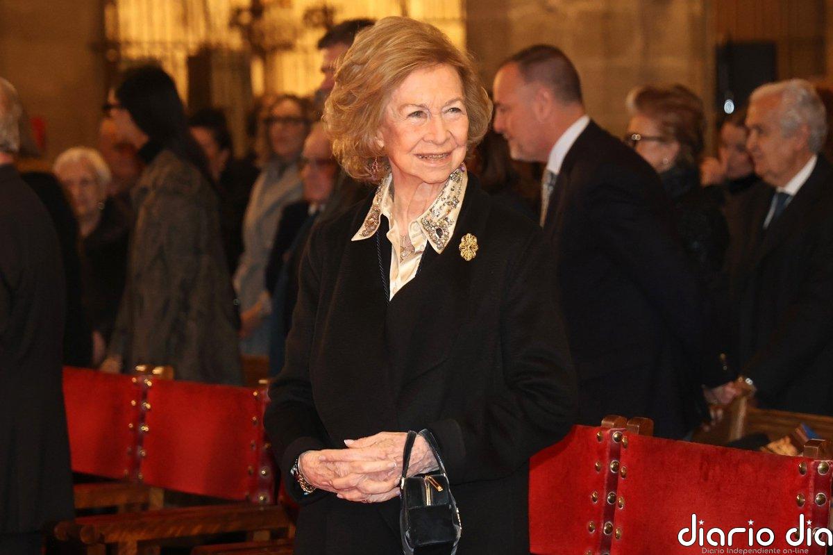 Lo ha hecho sin su hermana Irene de Grecia, recientemente fallecida, pero acompañada de sus hijas, las infantas Cristina y Elena, y de sus nietas Irene y Victoria Federica.