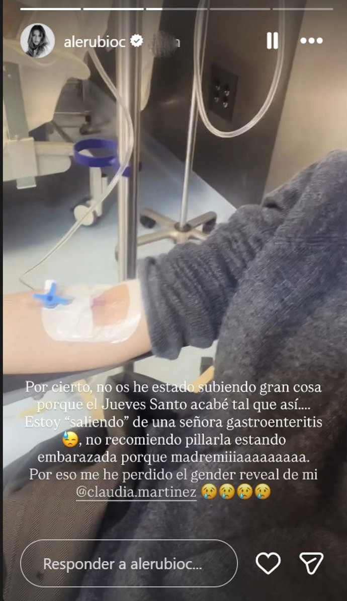 A través de sus historias, y con un vídeo de corta duración en el que se la ve en el hospital con una vía puesta en el brazo derecho, la hasta ahora colaboradora ha explicado la razón de su ‘desaparición’ en redes: «No os he estado subiendo gran cosa porque el Jueves Santo acabé tal que así… Estoy «saliendo» de una señora gastrointeritis» ha relatado desvelando así el contratiempo que le ha ‘estropeado’ la Semana Santa.