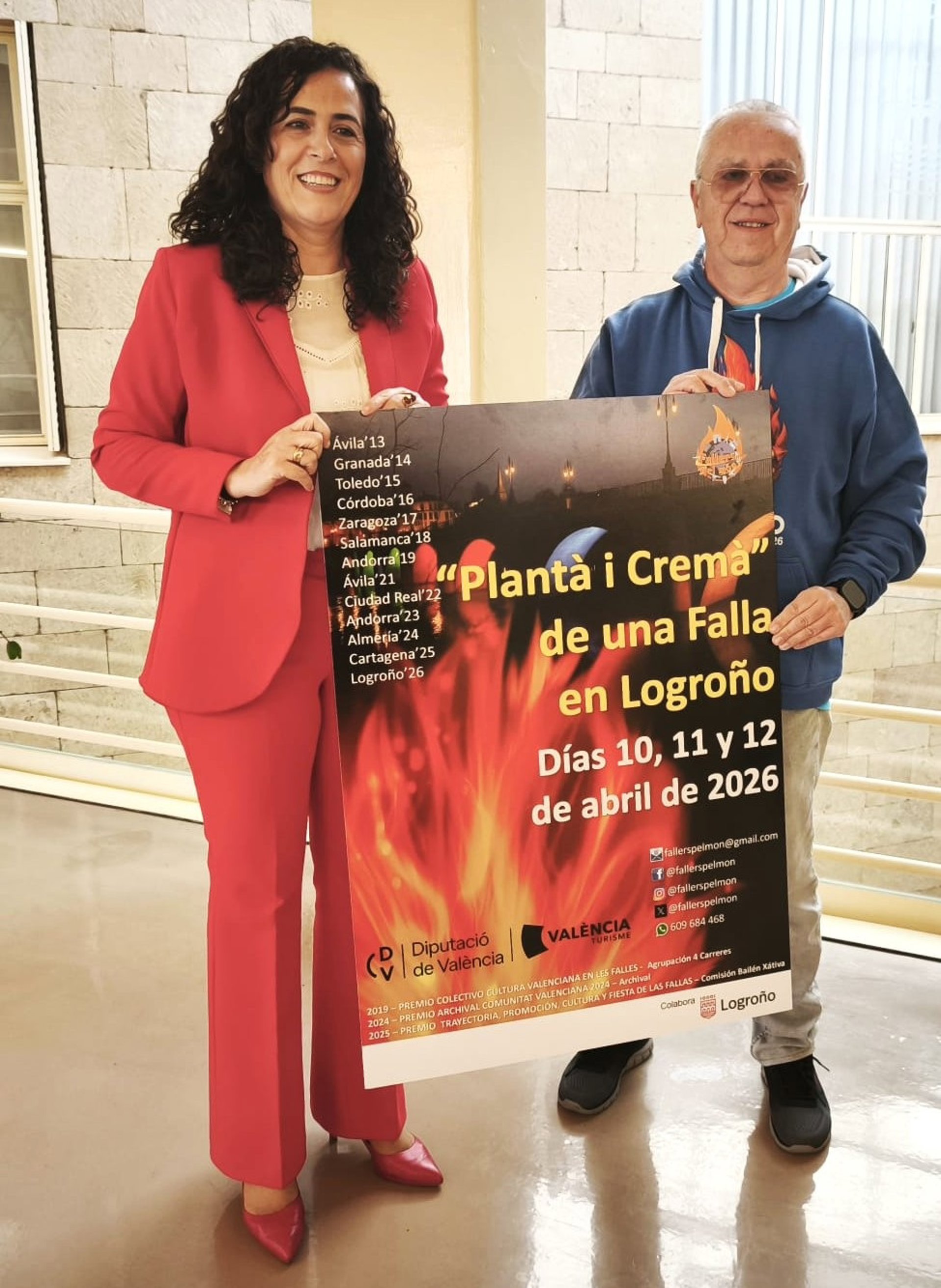 La concejala de Festejos, Laura Rivas, acompañada por el presidente de la asociación ‘Fallers pel Món’, José Enrique Amores, han presentado este martes las actividades, con el objetivo «de trasladar a los riojanos la esencia de las Fallas y que puedan disfrutar de las tradiciones más arraigadas en la Comunidad Valenciana».