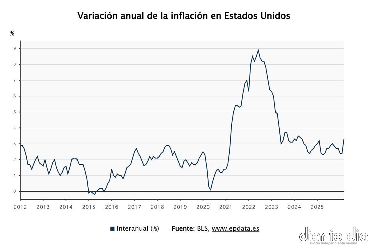 La tasa de inflación de Estados Unidos se aceleró el pasado mes de marzo hasta el 3,3% interanual desde el 2,4% de febrero, la mayor subida de los precios desde mayo de 2024, como consecuencia principalmente del impacto en los precios de la energía del conflicto en Oriente Próximo, según los datos de la Oficina de Estadística Laborales del Departamento de Trabajo.