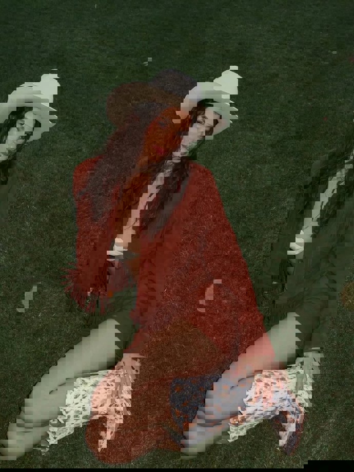 La estética western continúa consolidándose como uno de los grandes pilares del festival. Influencers como Andrea Garte apostaron por looks inspirados directamente en la esencia country-pop del cartel musical. Su conjunto de dos piezas elaborado con círculos metálicos y cadenas plateadas aportó un brillo y diversión que combinado con un sombrero de ala plana en tonos beige y botas cowboy marrones reforzaban ese aire festivalero tan característico.