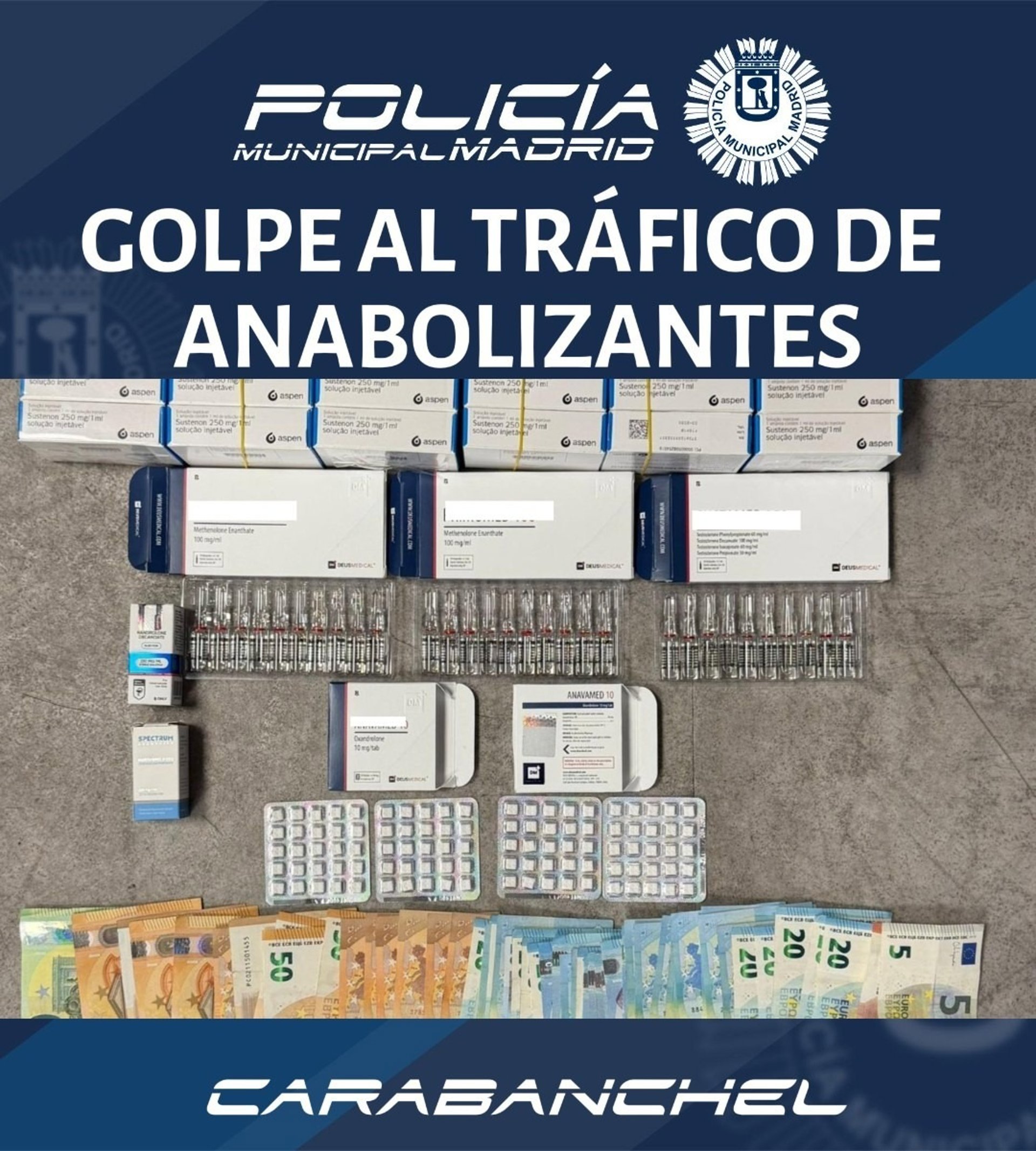 La Policía Municipal de Madrid ha informado de la reciente detención de un hombre en el distrito de Carabanchel al que acusan de distribuir anabolizantes que llevaba escondidos en el hueco de la rueda de repuesto de su vehículo.