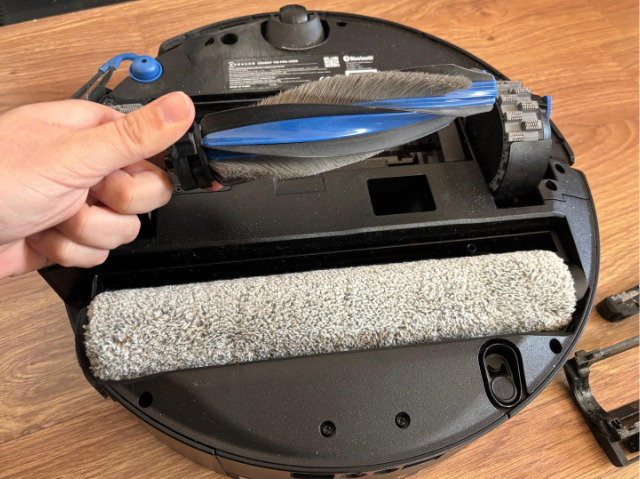 El robot aspira y friega correctamente gracias a su brazo y fregona, pero cuando llega a las esquinas no termina de limpiar la suciedad con precisión. Es comprensible en este tipo de robots que les cueste limpiar los restos en zonas difíciles, pero tampoco se ha ajustado con precisión a los marcos de las puertas.