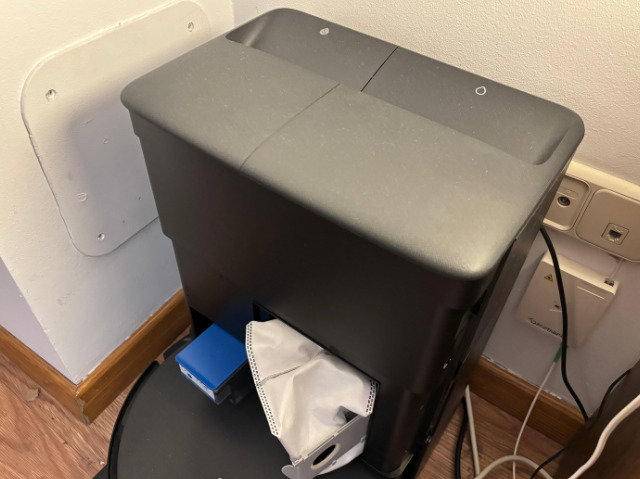 Más allá del agua, la estación incluye un recipiente para el producto de limpieza de la propia compañía, y a su lado la bolsa para almacenar el polvo recogido, con un tamaño que puede parecer pequeño pero con más de un mes de uso no se ha llenado ni la mitad, por lo que puede almacenar bastante suciedad.