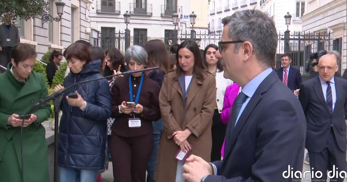 El último paso de Peinado ha cogido a Begoña Gómez en China. Sánchez no ha ido tan lejos como el ministro de Justicia. Bolaños decía ayer que la instrucción de Peinado avergonzaba a los jueces. “Es una opinión muy compartida por una amplísima parte de la sociedad española y de la carrera judicial. Afortunadamente hoy España es un estado de derecho no como en tiempos de Fernando VII”, decía Félix Bolaños, ministro de la Presidencia y Justicia. Dardo directo a uno de los párrafos que más ha escocido de la resolución del juez. Aseguraba que para encontrar conductas como la de la mujer del presidente habría que remontarse a las monarquías absolutas. Defensa cerrada desde la mesa de Palacio de la Moncloa. Los tres ministros presentes en la rueda de prensa del Consejo de Ministros critican en tromba el trabajo del juez. “¿Estamos ante decisiones judiciales que refuerzan nuestra democracia y luchan contra la impunidad o contra decisiones judiciales que la debilitan?”, se preguntaba el ministro de Transportes, Óscar Puente. Pregunta sin respuesta tras los reproches de dos asociaciones judiciales conservadoras. Reclaman a Bolaños respeto para la separación de poderes y la independencia judicial. El ministro se quejó por escrito ante el Consejo General del Poder Judicial (CGPJ) por la instrucción de Peinado. “Once meses después estas irregularidades que se están investigando deberían ir resolviéndose”, advierte Bolaños. Hoy el órgano de gobierno de los jueces, el CGPJ, le recuerda la necesidad de respetar las decisiones judiciales.