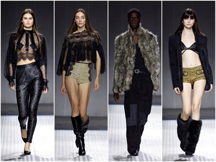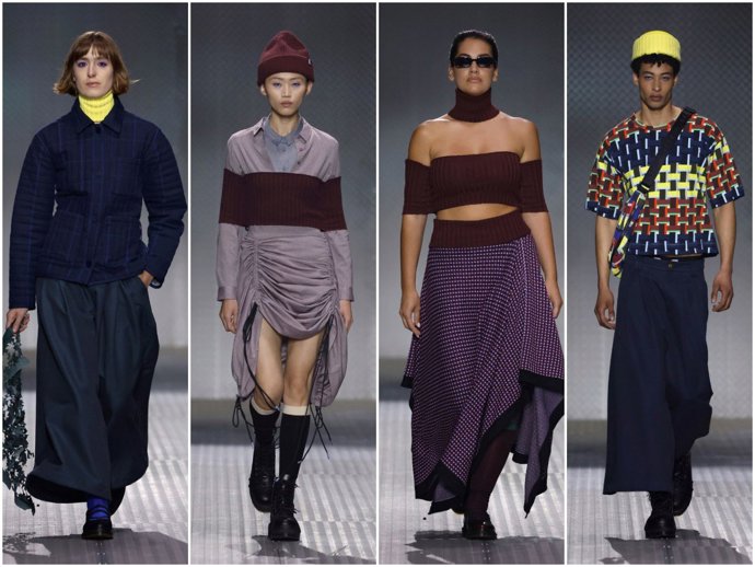La firma presentó su colección ‘El número’, que parte del pasado con piezas de sastrería icónicas de la marca con hombreras, drapeados, ecotes de los años 90 y con el protagonismo del denim. Además, también pudimos ver camisas con tres mangas, faldas pantalón y jeans denim con el tejido agujereado creando el efecto tipo pana.