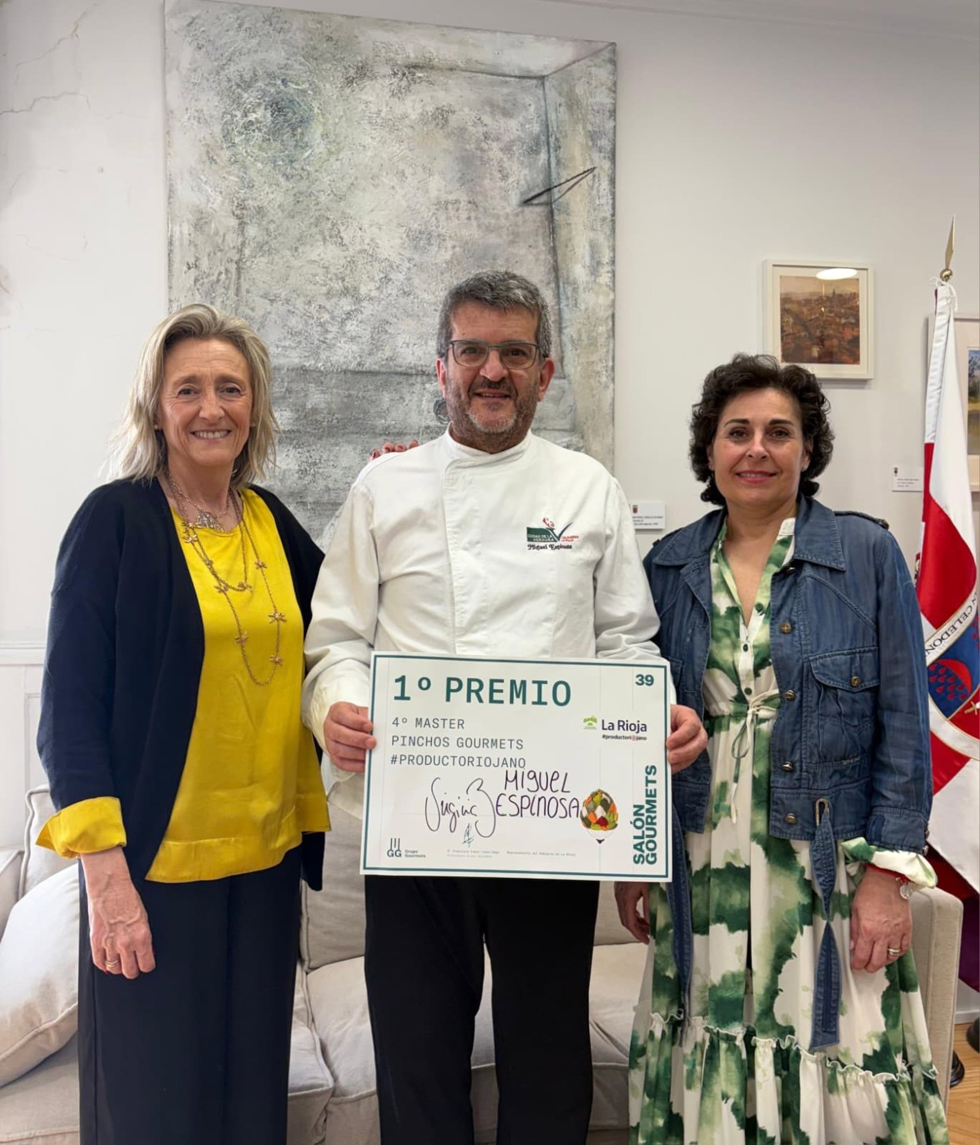 Durante el encuentro, la alcaldesa ha felicitado a Miguel Espinosa por este nuevo premio, que se suma a otros reconocimientos como el ‘Delantal de Oro’ del Concurso de Pinchos de La Rioja conseguido el año pasado.