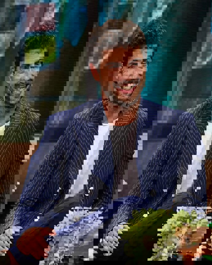 Que la raya diplomática vuelve a vestirse es un hecho, que Maxi Iglesias apostase por una blazer con este estampado para su aparición en ‘La Revuelta’ no es casualidad. No. El actor no se decantó por ella porque aporte un toque sofisticado al conjunto, hay un detalle que pasó desapercibido y que le conecta directamente con Aitana Sánchez-Gijón y la época que vivieron en ‘Velvet’.
