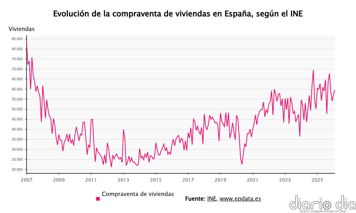La compraventa de viviendas baja un 0,5% en febrero, hasta las 59.689 operaciones