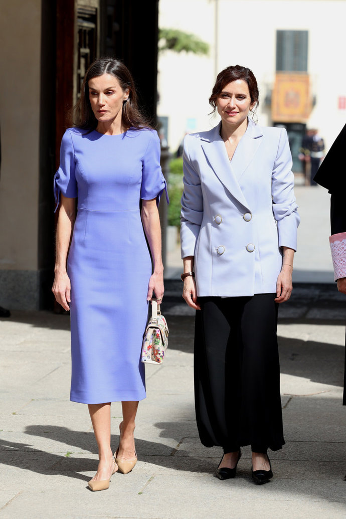 Para el evento, Doña Letizia ha elegido un vestido lila violeta de la firma Carolina Herrera, un diseño de lana midi con mangas farol y detalles de lazo, similar al que ya lució en 2025 durante un viaje oficial a Bélgica. El conjunto lo ha complementado con un pequeño bolso de flores de Furla, salones nude de la marca Magrit y unos pendientes de oro rosa y diamantes, reforzando así su apuesta por un armario reciclado, elegante y muy medido, que se ha convertido en uno de los elementos más comentados dentro de una jornada centrada en la literatura y el reconocimiento a la obra de Gonzalo Celorio.