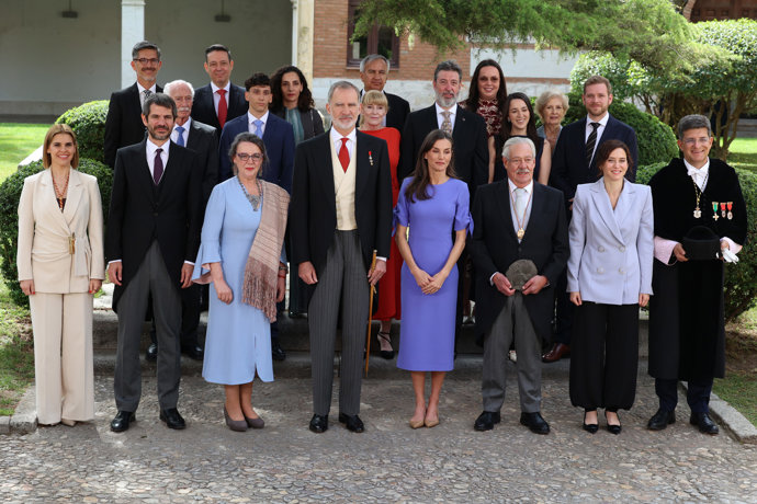 Minutos después hizo su entrada la Reina Letizia, acompañada por el ministro de Cultura, Ernest Urtasun, repitiendo el mismo saludo a la enseña nacional y adoptando luego una actitud cercana. Una vez reunidos ambos, los Reyes saludaron con sonrisa y un «buenos días» a la prensa y a los ciudadanos que se habían congregado en la plaza, antes de adentrarse juntos al Paraninfo para presidir el acto de entrega del galardón a Celorio.