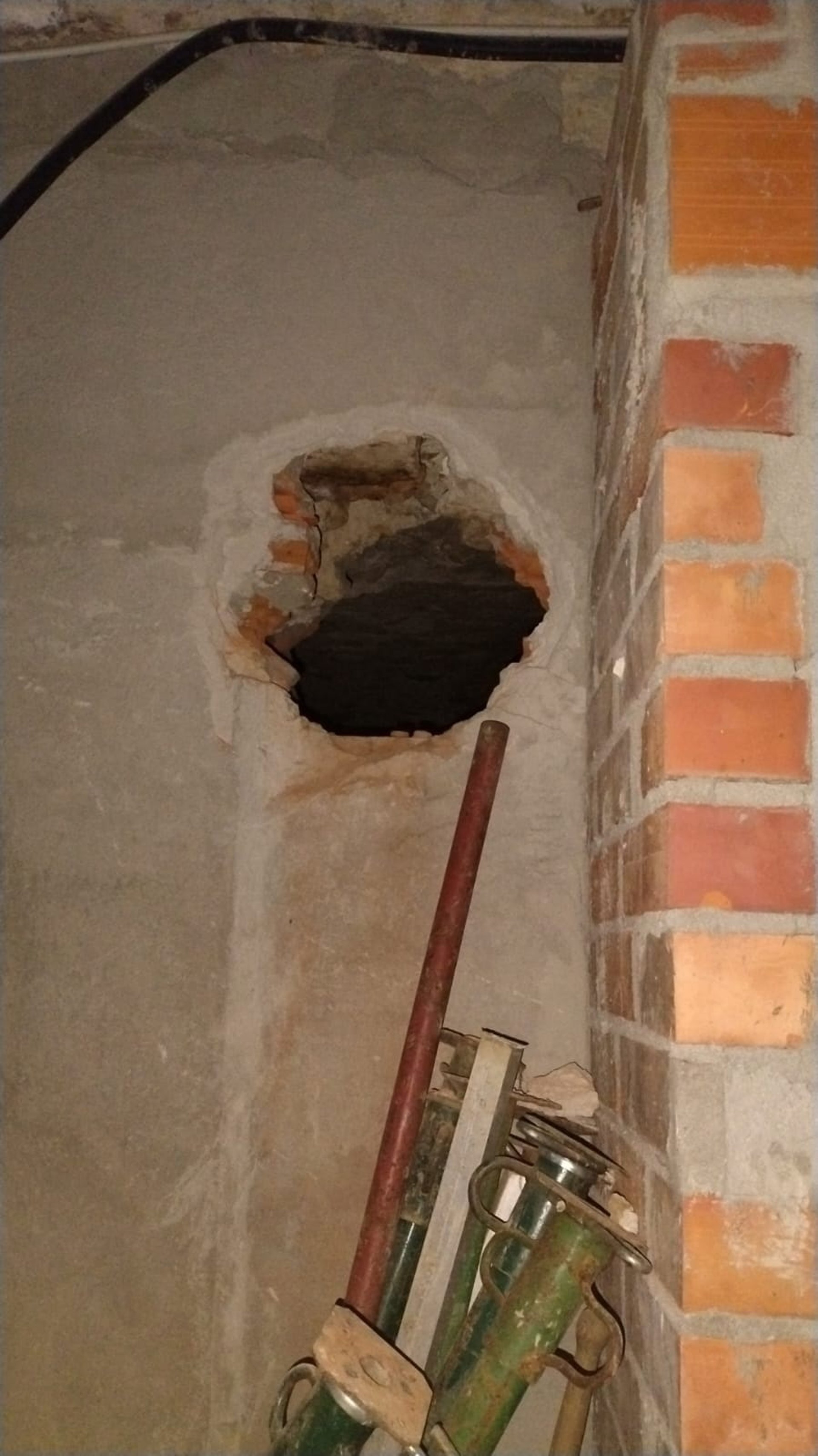 El autor se descolgó por un agujero hecho en la pared maestra, que está a unos dos metros de altura, pero los agentes lo localizaron cerrando el perímetro del edificio.