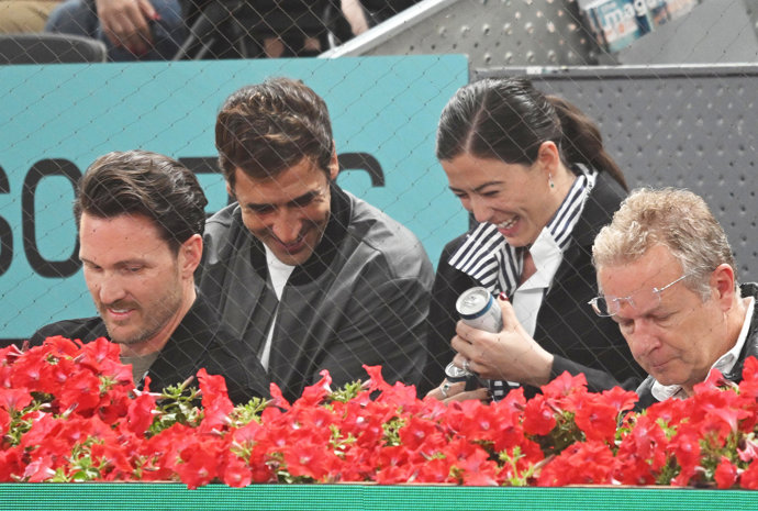 Además del alcalde de la capital, José Luis Martínez-Almeida, de los actores Iván Sánchez y Rubén Cortada, o de las estrellas del Real Madrid Thibaut Courtois -acompañado por su mujer, Mishel Herzig-, Jude Bellingham, Franco Mastantuono, o Lunin, animando a Jódar estaban, como no podía ser de otra manera, los dos codirectores del Mutua Madrid Open, Feliciano López y Garbiñe Muguruza, que se han convertido en los inesperados protagonistas de la jornada por la complicidad que han derrochado con sus parejas, Sandra Gago y Arthur Borges respectivamente.
