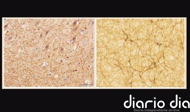 Izquierda: corte de cerebelo, con factor de aumento 40x, obtenido con microscopía electrónica (Dr. E. Zunarelli, Hospital Universitario de Módena);...