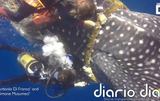 MADRID, 26 ene. Un valiente equipo de buzos protagonizó el increíble rescate de un tiburón ballena que había quedado atrapado...