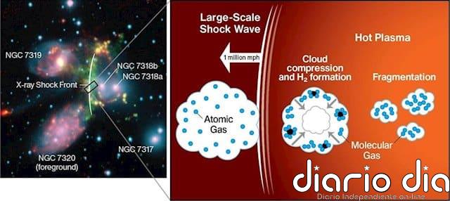 Imagen de la interacción entre galaxias y cómo incide en la formación de agujeros negros - Guillard et al. 2009/B....
