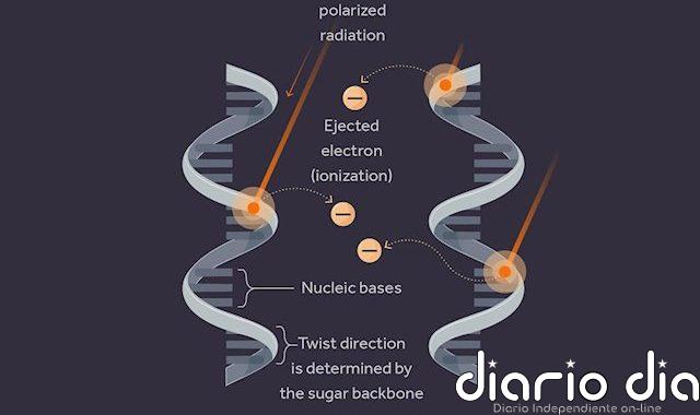 La radiación polarizada magnéticamente ioniza preferentemente un tipo de "mano" que conduce a una tasa de mutación ligeramente diferente entre...