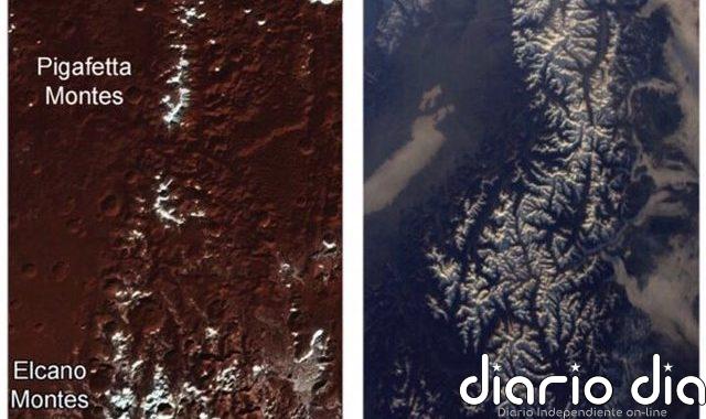 Comparación de cadenas montañosas de Plutón y la Tierra - NASA/JHUAPL MADRID, 13 Oct. - Las montañas de Plutón están...