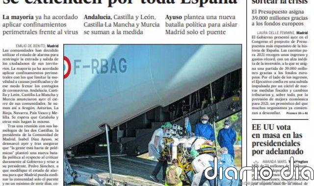 Portadas - AGENCIAS MADRID, 29 Oct. - Las primeras ediciones de los principales periódicos llegados a nuestra redacción incluyen, entre...