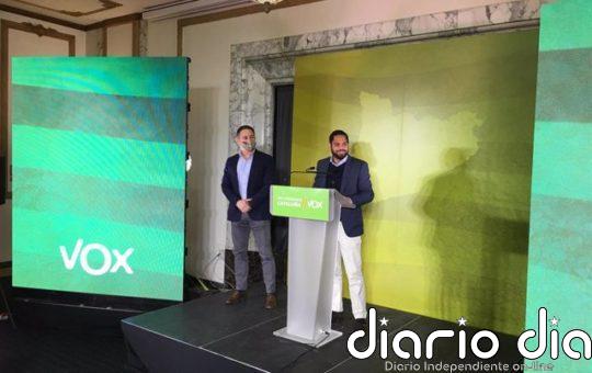 El presidente de Vox, Santiago Abascal, y el candidato a las elecciones del 14F, Ignacio Garriga, en una rueda de...