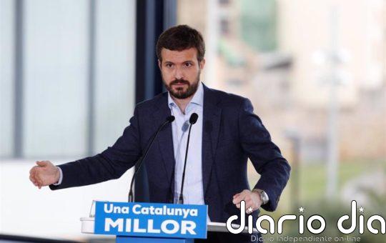El presidente del Partido Popular, Pablo Casado interviene durante un acto de campaña del PP para las elecciones a la...