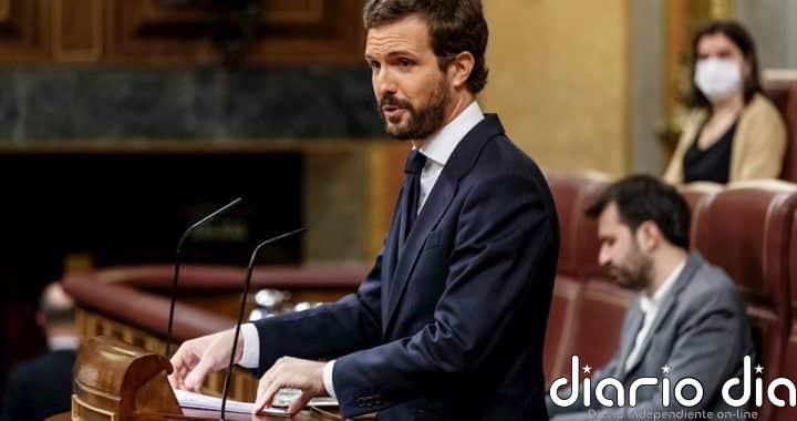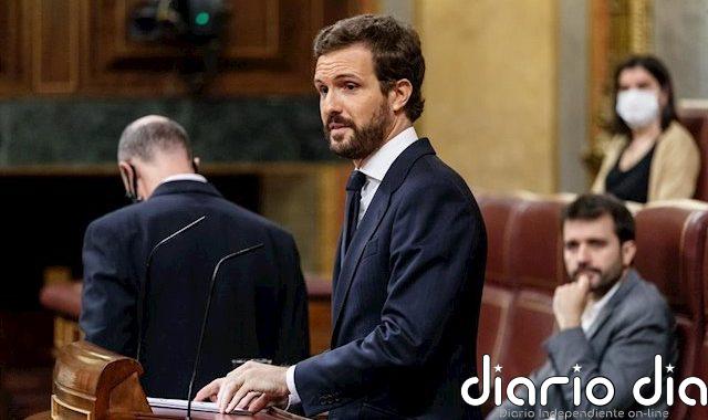 El presidente del Partido Popular, Pablo Casado, durante su intervención en la sesión del Congreso que debate la sexta prórroga...