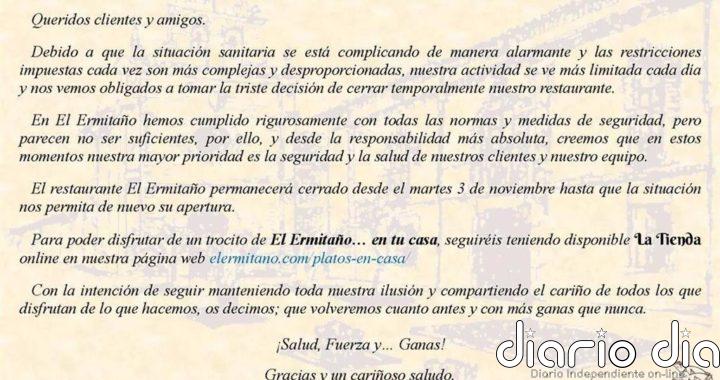 VALLADOLID, 30 Oct. - El restaurante con una Estrella Michelin 'El Ermitaño', situado en Benavente (Zamora), ha anunciado que cerrará...