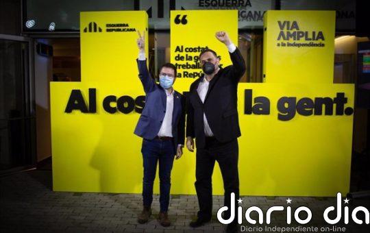 el candidato de ERC a la presidencia de la Generalidad de Cataluña y vicepresidente en funciones, Pere Aragonés (i); junto...