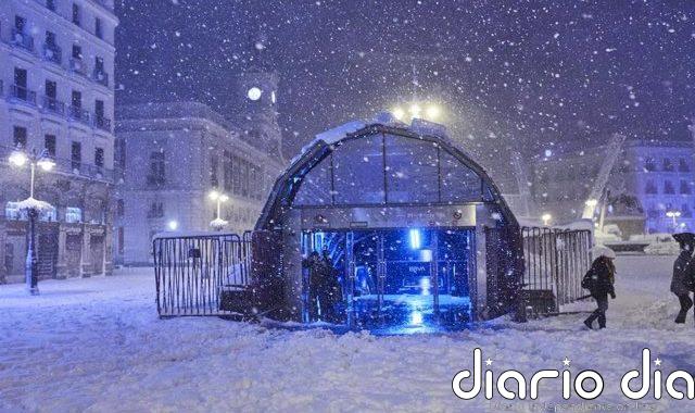 Estación de metro del centro de la capital cubierta de nieve tras el paso de la borrasca Filomena, en Madrid...