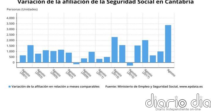 SANTANDER, 2 Sep. - La Seguridad Social ganó 3.372 afiliados en Cantabria en agosto respecto al mes anterior, un 1,5%,...