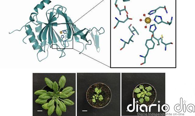 Estructura cristalina de PCO4, destacando residuos de aminoácidos clave, cuya importancia se verificó en la planta modelo Arabidopsis - UNIVERSITY...