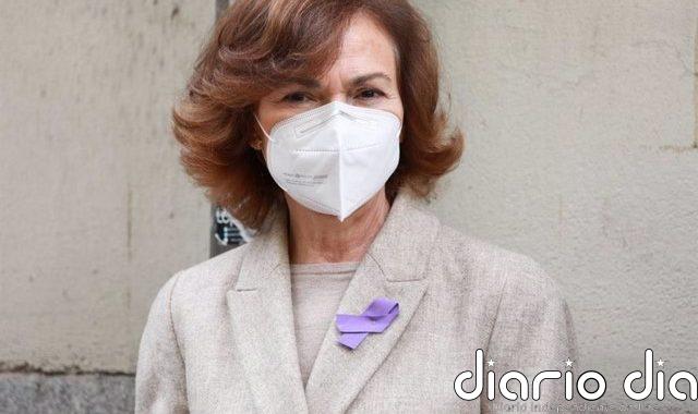 La vicepresidenta primera del Gobierno, Carmen Calvo, en el minuto de silencio en Ferraz. - PSOE MADRID, 25 Nov. -...
