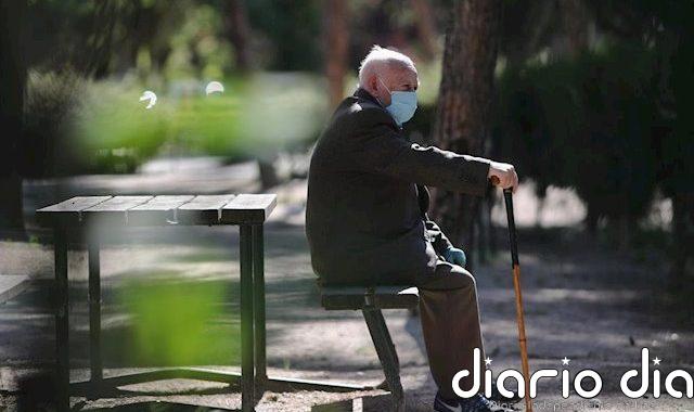 Un anciano con mascarilla descansa en el Parque Calero, en el distrito de Ciudad Lineal de la capital, uno de...