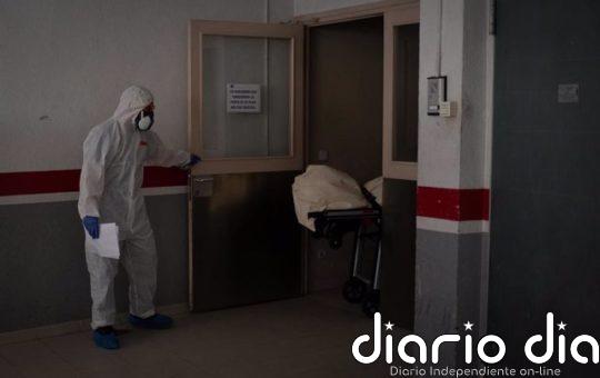 Varios operarios protegidos de los Servicios Funerarios Memora trasladan el cuerpo de una persona fallecida en una residencia de ancianos...