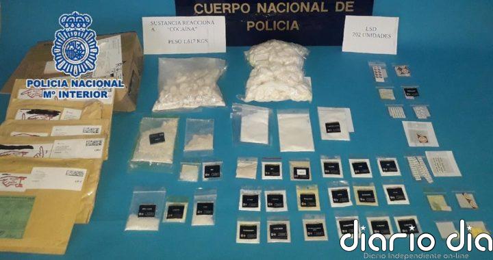 Se han incautado de 1.817 gramos de cocaína y 202 piezas de cartón con LSD, que enviaba como llaveros o...